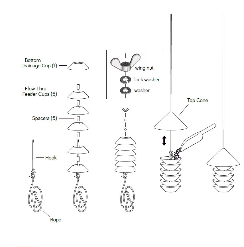 Leverans: Fågelmataren levereras omonterad för att ta liten plats i transporten. Du sätter smidigt samman delarna med hjälp av en tydlig skiss som följer fågelmataren och som också finns på förpackningen. Du kan även se bild på montaget här.